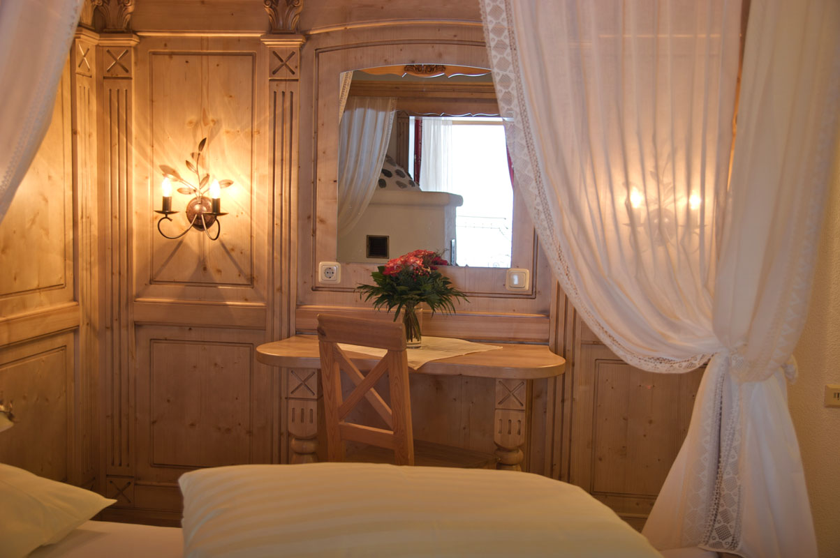 All our double rooms are furnished with bright solid wood furniture in Tyrolean style and are equipped with the following: shower/WC, cable TV, room safe and hairdryer. Each room has a balcony.