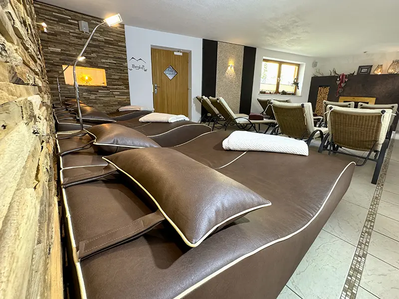 Nach einem anstrengenden Skitag steht Ihnen unser großer Wellnessbereich zur Verfügung, damit Sie wieder frische Kraft und Energie für den nächsten Tag tanken können. Wir bieten Ihnen eine finnische Sauna, ein türkisches Dampfbad und eine Infrarotkabine mit Farblicht. Zwischen den Anwendungen finden Sie Entspannung in unserem großen Ruheraum oder Sie genießen die kühle Bergluft im Frischluftraum. Bedienen Sie sich an unserem Tee- und Saftbuffet.